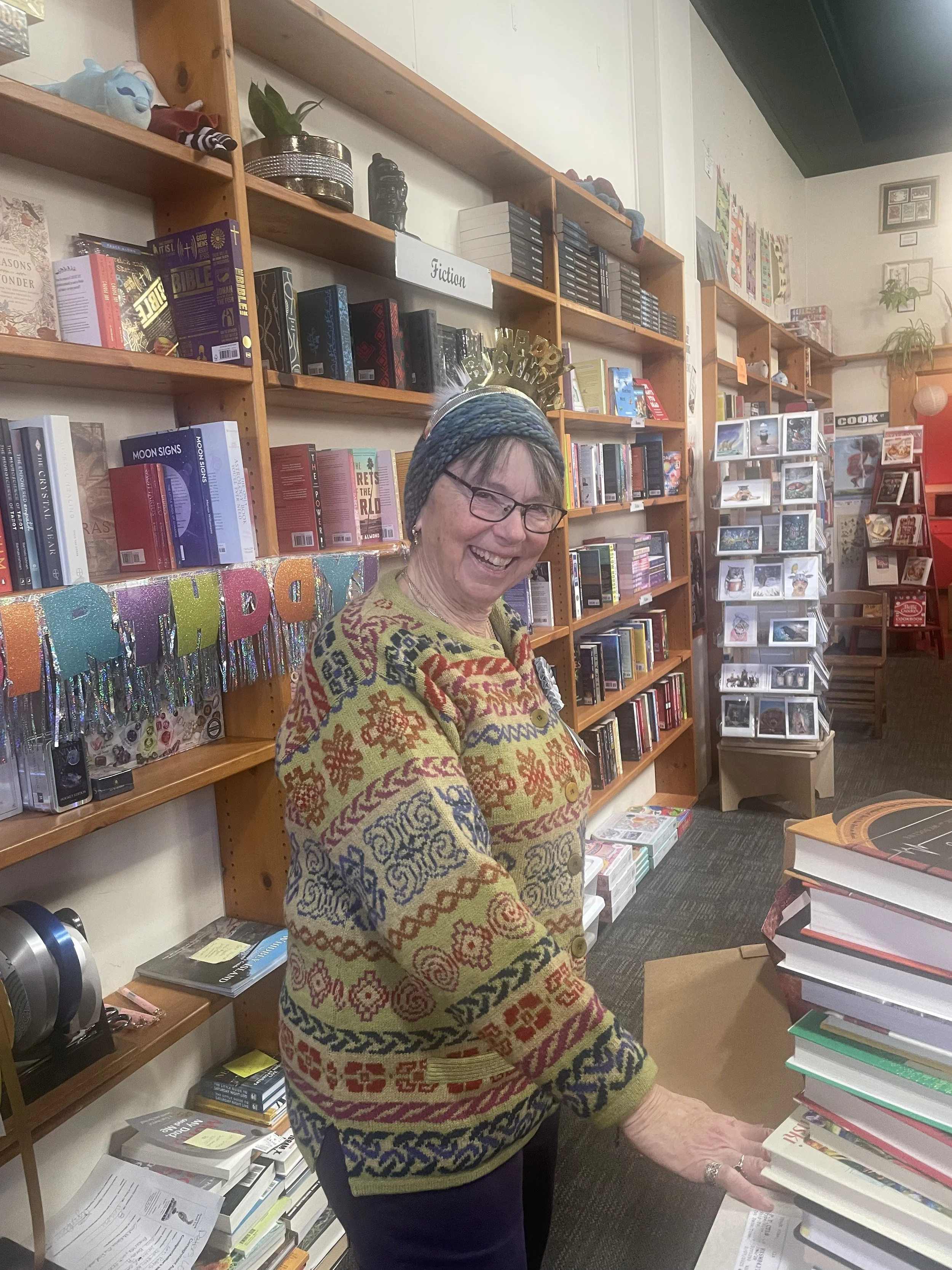 I LOVE owning this bookshop. It is a very exciting and exhausting job. Everyday is new, fun, and interesting. I am married to Ben, and he works for the Washington State Ferries. I have 4 kids–they range in ages 10 years to 23 years old. I like to visit with friends and try new foods. I like dark beers…really dark beers. I love to crochet, read, and roller skate. I like to hike and ride my bicycle. I LOVE to travel! In the last 13 years I have been to Ireland, Iceland, Denmark, Italy, Banff (Canada), Scotland, Mexico, and the Dominican Republic. In 2025 we took a cruise and visited French Polynesia, New Zealand and Australia. We often bugger off to Hawaii for a little reprieve and some sunshine.